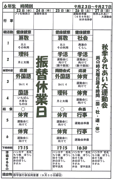 6年 時間割 - 錦町立木上小学校